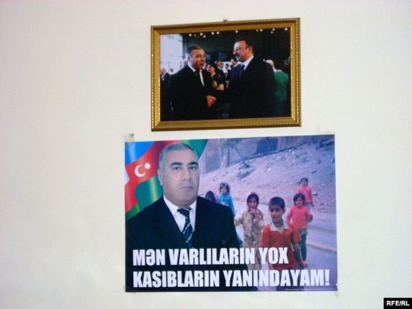 Partiyanın namizədi Hafiz Hacıyev binanın ikinci mərtəbəsində, divarlarında rəqibi, hazırkı prezident İlham Əliyevin şəkilləri asılmış bir otaqda oturur. Seçki plakatlarında Elçibəyin davamçısı olduğu bildirilən H.Hacıyev İ.Əliyevlə əl sıxıb görüşdüyü şəkilin masanın üzərində dayanmasını belə izah edir: