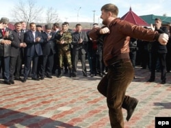 Prezident Kadırov Qroznıda səsvermə məntəqəsi qarşısında rəqs edir. Qroznı, 02 mart 2008