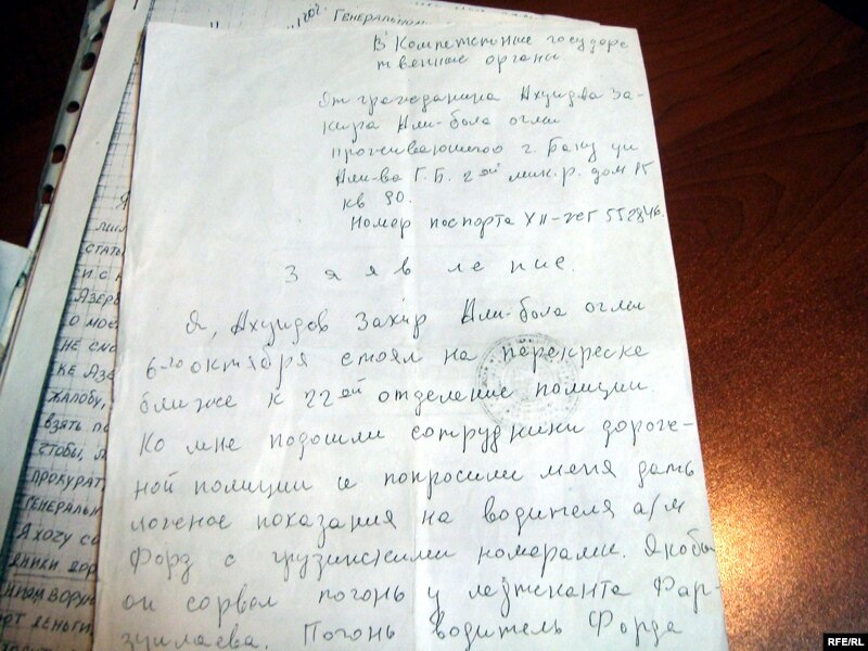 Zakir Axundov etiraf edir ki, ifadəni yazmağı ondan yol polisləri xahiş edib