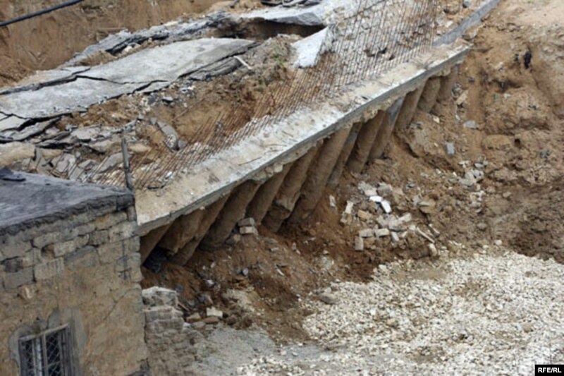 Çoxmərtəbəli binanın özülü qazılarkən «Cəfər Cabbarlı» küçəsində şose təxminən 2 metr uçub. Səbəb tikinti yerində su borusunun partlaması idi. Tikinti yerini müşahidə edərkən bəlli olur ki, dirəklər basdırıb yolu bərpa edirlər. Minayə Qurbanova deyir ki, evlərin altında qrunt suları var, istənilən vaxt bura uça bilər: