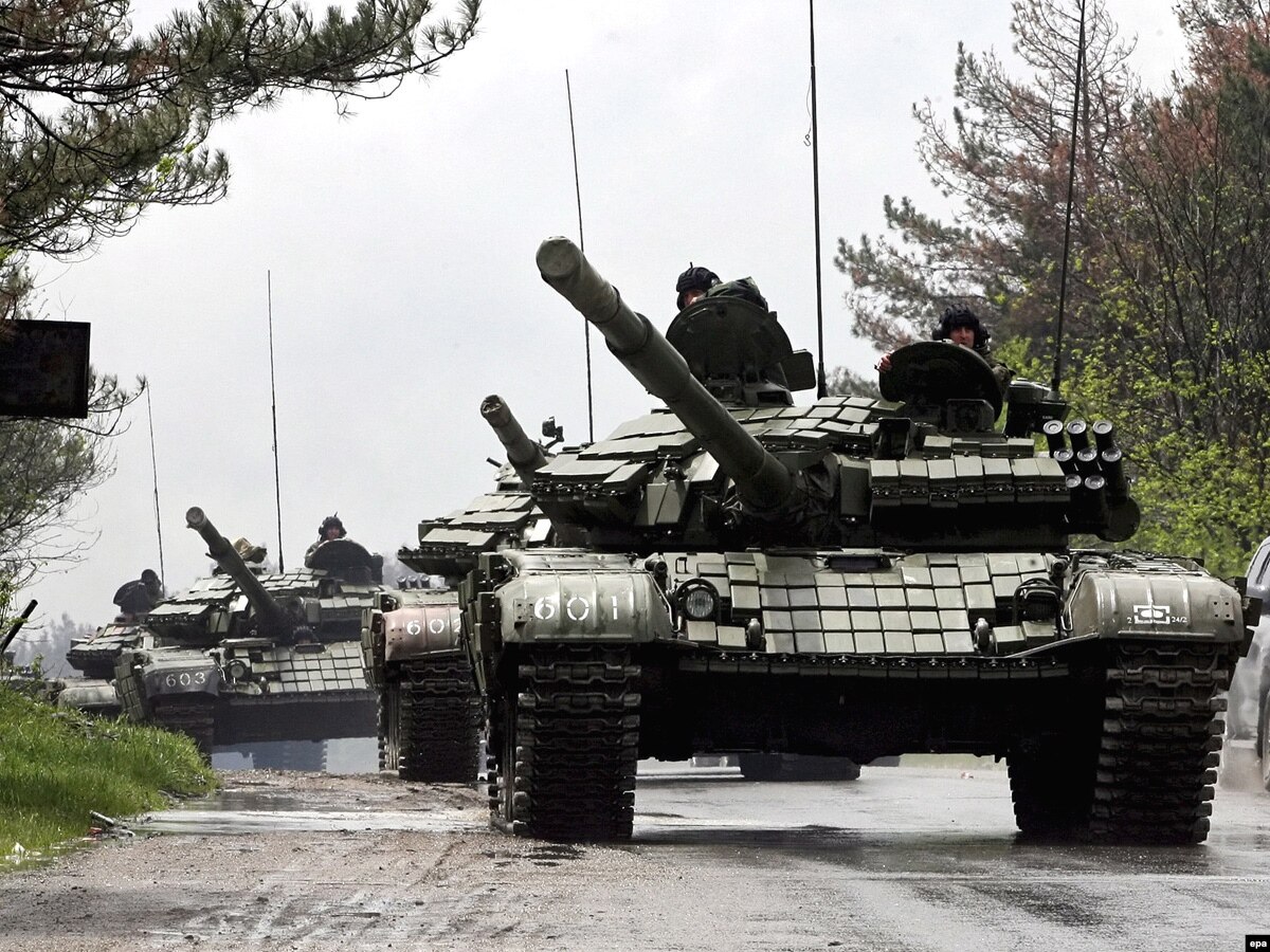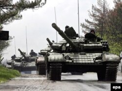 Zirehli maşınlar Muxrovani hərbi bazasına doğru irəliləyir, 5 may 2009