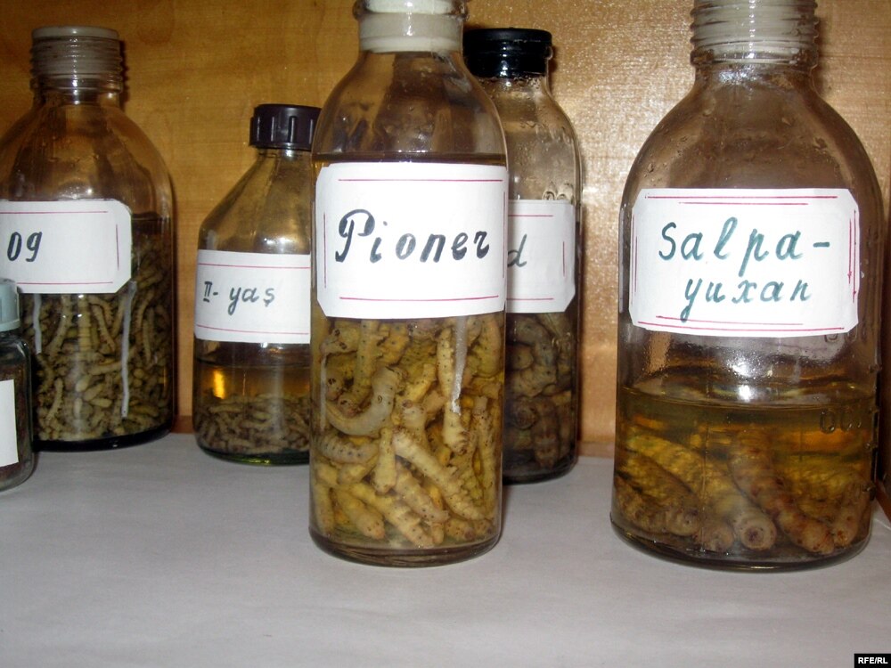 Almaz Qulambəyova Akademiyada məşhur ipəkçi mütəxəssis Rəhim Hüseynov adına laboratoriyanı həvəslə mənə göstərir. Burda kiçik şüşə bankalarda cins toxumlar, müxtəlif növ tut yarpaqları, qurd, tırtıl, pup, kəpənək və baramaların saxlanıldığı kiçik guşə hazırlanıb. Təbii ki, bütün bunlar əyani dərs vəsaitləri kimi tələbələrə tədris olunurdu. Hazırda isə il ərzində cəmi bir tələbə bu vəsaitlərdən yararlana bilir.
