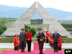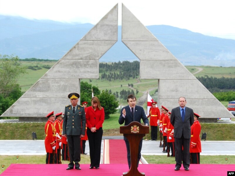 Prezidentin özü isə Muxadverdidə keçən il Rusiya-Gürcüstan müharibəsində ölən əsgərlər üçün qardaşlıq məzarı yaxınlığında memorialın açılışında iştirak edib.