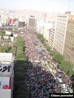 Tehranda Musəvinin tərəfdarları yenə də mitinq keçirirlər. İrandakı xarici informasiya agentliklərinin yaydığı məlumata görə, şəhərin mərkəzindəki ən böyük meydanlardan biri – İmam Xomeyni meydanı və meydana aparan küçələr yüz minlərlə Musəvi tərəfdarıyla dolub. Musəvinin günün əvvəlindəki çağırışana əməl edən tərəfdarları qara libaslar geyiblər. Qollarında isə yaşıl sarğılar olub.