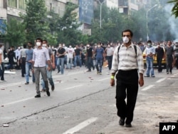 Polis nümayişi dağıtmaq üçün gözyaşardıcı qazdan istifadə edir, 20 iyun 2009