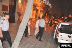 Səbail polisi gənc fəalları qolları bir-birinə qandallı aparır, 8 iyul 2009