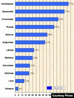 “Gallup” qeyd edir ki, 12 keçmiş sovet respublikasında 1000 nəfərlə üzbəüz söhbətdə onlara bu sualı verib: Sizcə, ölkə rəhbərliyi işinin öhdəsindən necə gəlir?
