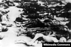 Buxenvaldda əsirlərin meytləri. Aprel 1945.