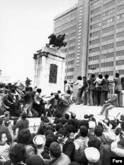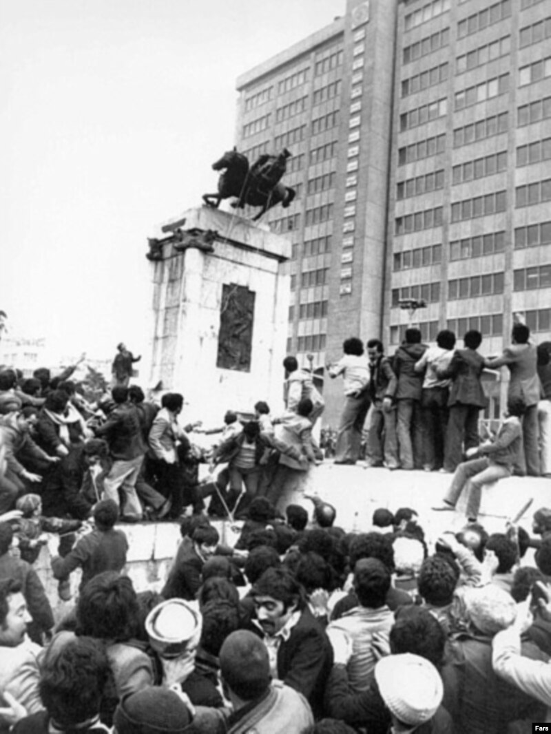 Iİran şahının inqilabçıların qəzəbinə tuş gələn heykəli. 1979