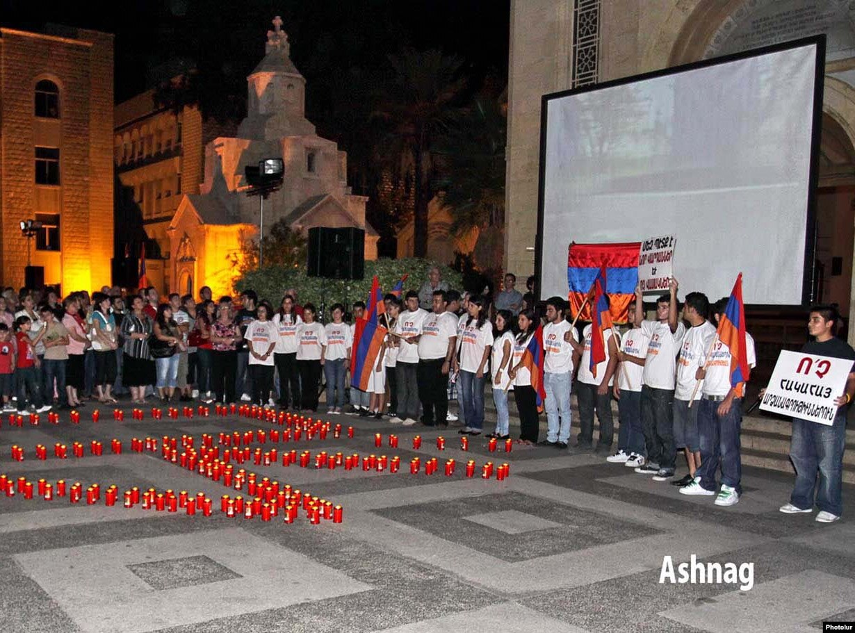 Yaxınlıqda «Daşnaksütun» partiyası da etiraz aksiyası təşkil edir. Etiraz aksiyasının iştirakçıları kimi, aclıq edənlər də Ermənistanla Türkiyənin oktyabrın 10-da imzalayacaqları sənədə etiraz edirlər. Bu protokollara əsasən, Ermənistan Türkiyənin sərhədlərini tanıyacaq, Türkiyə də Ermənistanla 1993-cü ildə bağladığı sərhədləri açacaq. Sənəddə nə Qarabağdan, nə də soyqırımı və ermənilərin Türkiyəyə olan torpaq iddialarından söz açılır.