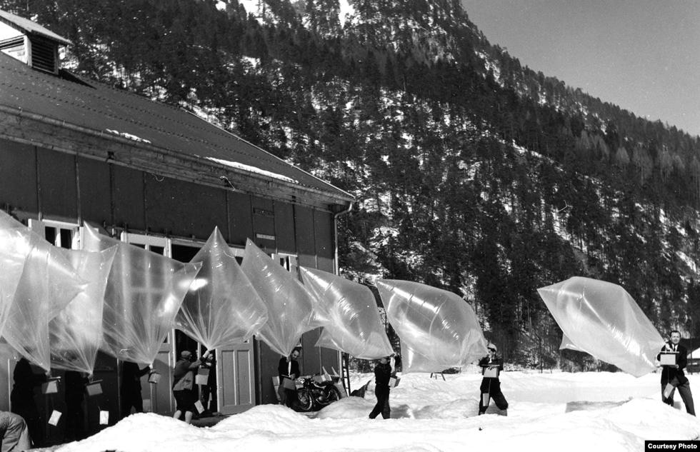 AzadliqRadiosunun əməkdaşları Çexoslovakiyaya vərəqələr daşıyacaq şarlar hazırlayırlar (1951)