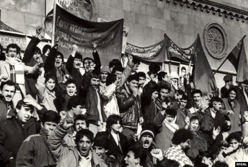 В 1988-м году в Баку на тогдашнюю площадь Ленина (сейчас площадь Азадлыг)собрались люди, возмущенные событиями в Карабахе.