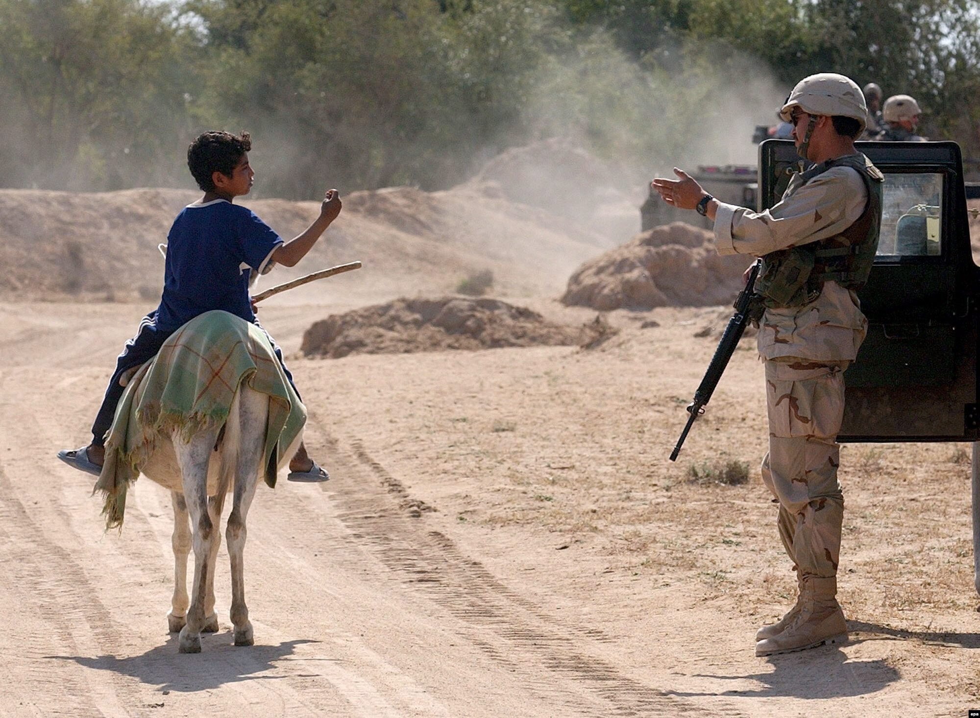 İraqlı oğlan Nəcəfdə ABŞ hərbçisi ilə danışır, 14 aprel 2004