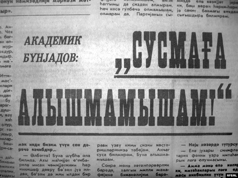 Bu dəfə sovet dövrü Azərbaycan mətbuatının icmalı rubrikasında akademik Ziya Bünyadovun müsahibəsini ixtisarla təqdim edirik