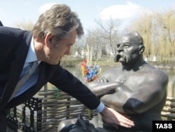Ukraynada Qoqolun qəhrəmanlarına da abidə qoyulub. Ukrayna prezidenti Yuşşenko Qoqolun 200 illik yubileyində iştirak edir. Poltava vilayəti, 1 aprel 2009