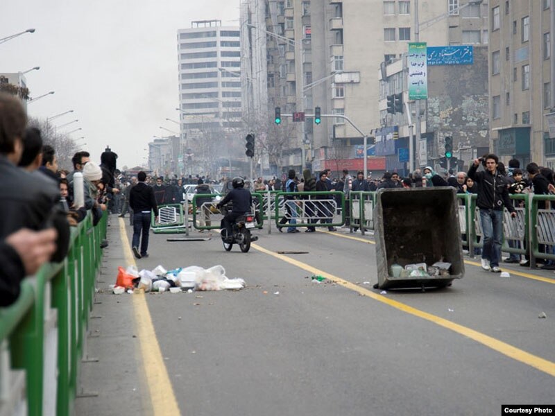 - Hazırda mən Bozorgmehr və Vali Əsr küçələrinin kəsişdiyi yerdəyəm. Burada çox böyük sayda adam toplaşıb. Motosikletdə olan təhlükəsizlik qüvvələri kütləyə hücum edir. Mən onlardan 100-150 nəfərini gör bilirəm. Adamlar bir neçə zibil qutusuna od vurublar. Onlar İslam Respublikasının lideri və diktatura əleyhinə şüarlar səsləndirirlər.