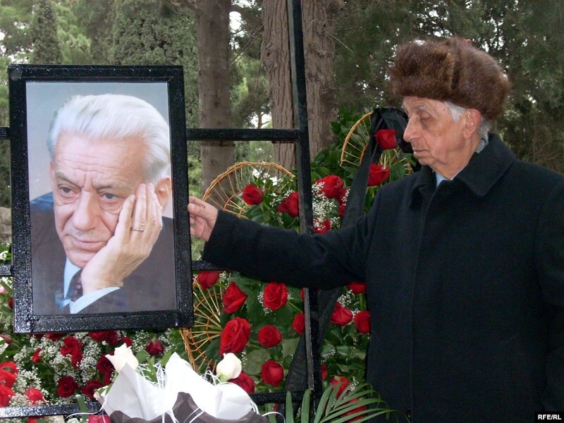 Dostu Şirməmməd Hüseynov Bəxtiyar Vahabzadənin məzarı önündə