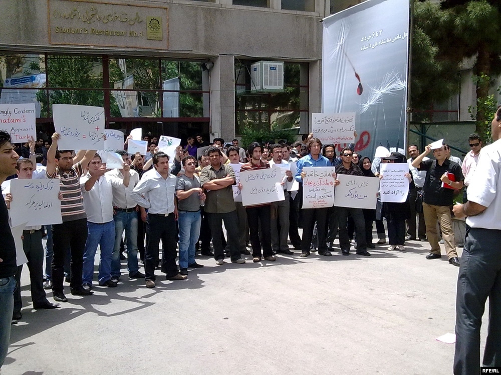 Azərbaycanlı tələbələr Tehran Universitetində Xatəminin azərbaycanlılar haqqında zarafatına etiraz edirlər, 26 may 2009