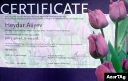 «Qızılı-bənövşəyi rəngli bu güllər Hollandiya Zanbaqlarının Kultivasiyası üzrə Kral Assosiasiyası tərəfindən dünyada ilk dəfə olaraq ümummilli lider Heydər Əliyevin adına yetişdirilib. Sertifikatın iki nüsxəsi prezident İlham Əliyevə təqdim olundu. Sertifikatlardan daha biri Zanbaqların Kultivasiyası Beynəlxalq Reyestr Təşkilatına, digəri isə Hollandiya Zanbaqlarının Kultivasiyası üzrə Kral Assosiasiyasına təqdim edilib. Dövlətimizin başçısı yeni uğurlu növ yetişdirilməsi münasibətilə Assosiasiyanın nümayəndələrini təbrik edərək, onlara müvəffəqiyyətlər arzuladı». – AzərTAc yazır