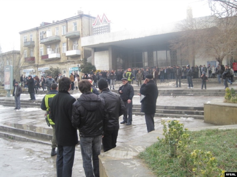 Полиция разгоняет людей, собравшихся у станции метро "Низами". Обеспокоенные участью своих родных эти люди сообщили репортеру РадиоАзадлыг, что в туннеле уже нет пассажиров.