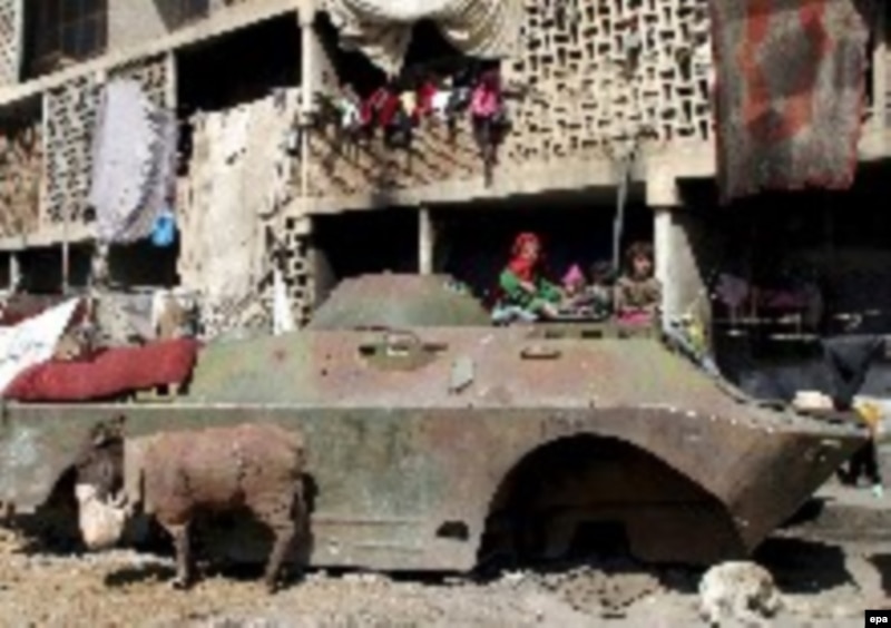 Paytaxt Kabul yaxınlığında məhv edilmiş sovet tanklarından birnin qalıqları hələ də qalır, 28 mart 2006