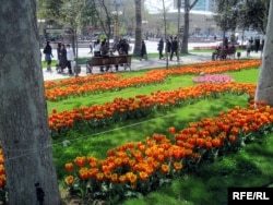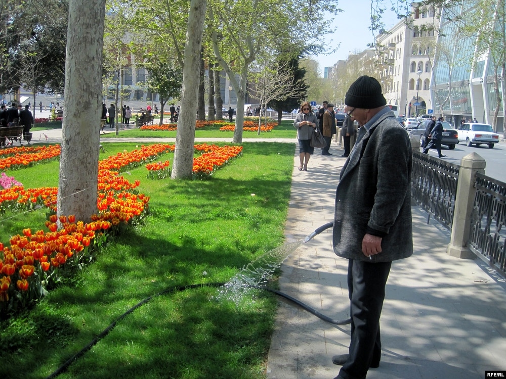 Heydər Əliyev parkının bağbanlarından biri Ramiz Əliyev deyir ki, güllərə xüsusi qayğı göstərirlər, həftədə bir dəfə sulayırlar:
