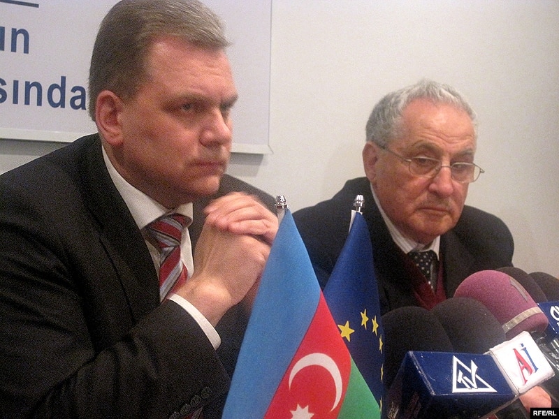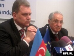 Həmməruzəçilər Andres Herkel və Cozef Debono Qrex Bakıda mətbuat konfransında, 11 fevral 2010