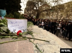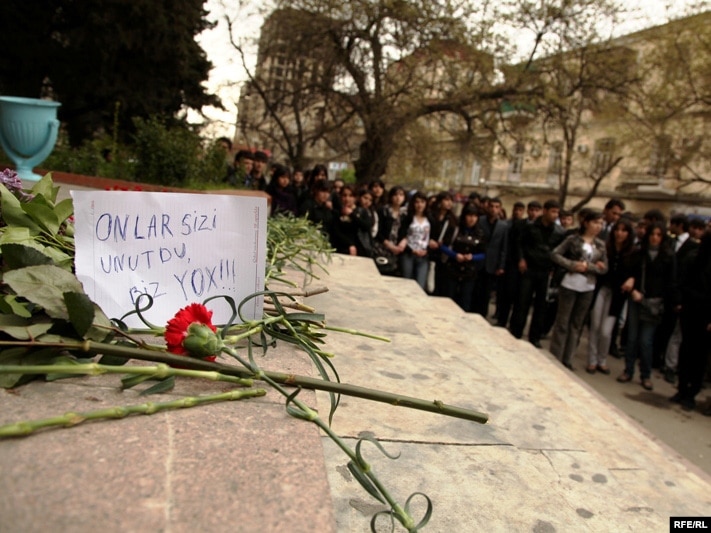 Səhər saatlarından başlayaraq, gənclər Bakının mərkəzindəki Azərbaycan Dövlət Neft Akademiyasının ikinci korpusunun qarşısına axışır. Azadlıq Radiosunun müxbirlərinin verdiyi məlumata görə, gənclərin gətirib binanın girişi qarşısına düzdüyü çiçəkləri universitet rəhbərliyi toplayaraq binanın içərisinə aparır.