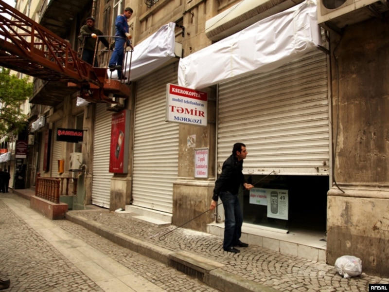Полиция приказывает владельцам и служащим закрывать магазины около Нефтяной академии. Все пешеходные пути под контролем полиции.