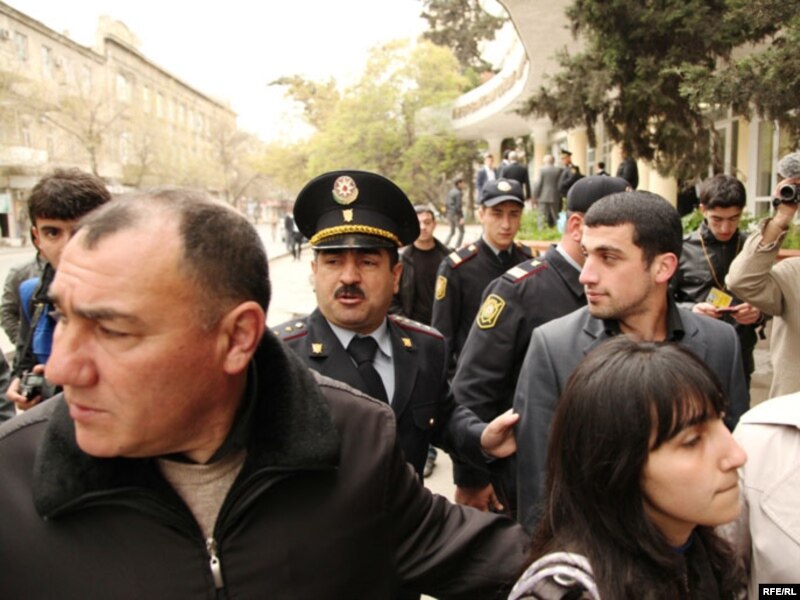 Корреспондент РадиоАзадлыг сообщает, что полицейские и лица в гражданском заталкивают десятки молодых людей в автобусы и увозят в неизвестном направлении. Одна из участниц акции Нигяр Фатали сообщила РадиоАзадлыг: