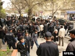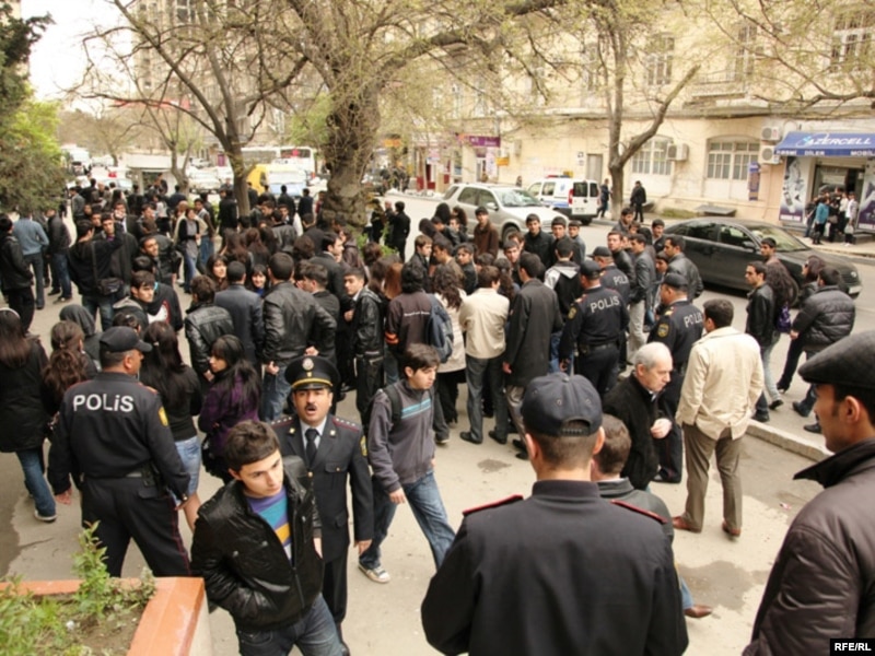 сотрудники полиции и лица в гражданском. Эти территории прилегают к Бакинскому государственному университету, Техническому университету и Университету архитектуры и строительства.