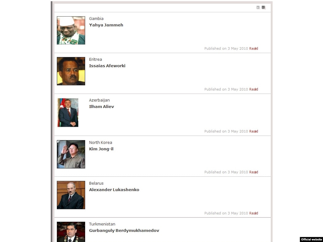 «Mətbuat qənimləri» adlandırılan siyahıda bir sıra dövlət və hökumət başçılarının adları, o cümlədən Çin prezidenti Hu Dzintao, İran prezidenti Mahmud Əhmədinejad və Rusiyanın baş naziri Vladimir Putinin adları var.