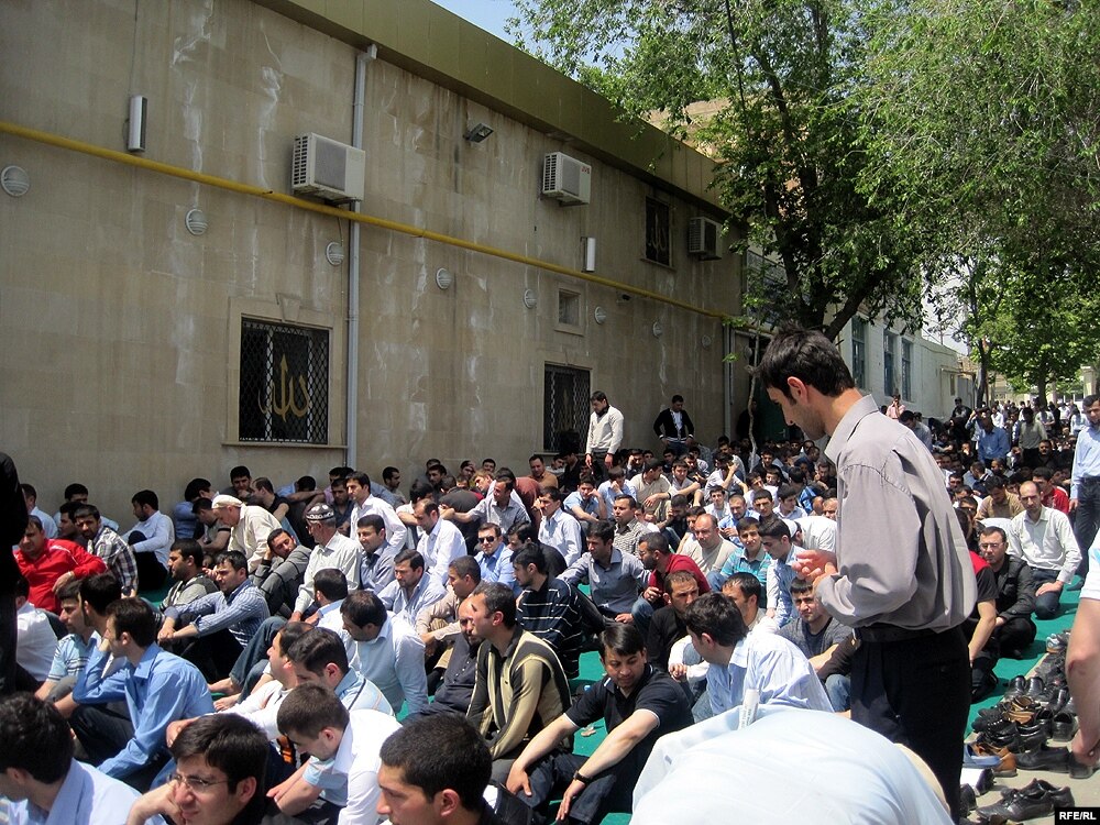 «Məşədi Dadaş» məscidində isə dindarlar məscidin həyəti dolduğundan həyətdən kənardakı yolda cümə namazına yığışmışdılar.