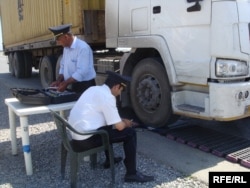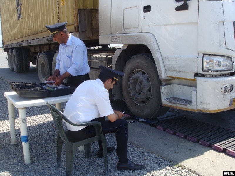 İrandan gələn yük maşını ölçülür, 2 iyun 2010
