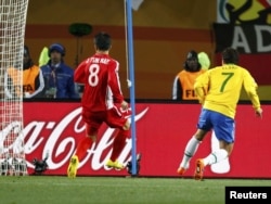 Brazilyalı Maicon (2) arxa xəttin yanında idi. Şimali Koreyanın qapıçısı Ri Myong-guk ımin idi ki, o, topu ötürəcək. Brazilyalının fikri tam başqa idi. Maicon iti bucaq altından topu elə firladır ki, düz rəqib qapısına girir 1-0