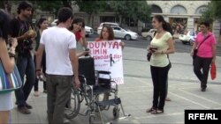 Aksiya iştirakçısı Sənubər Heydərli deyir ki, aksiyanın məqsədi şəhər sakinlərinə əlilliyin nə olduğunu anlatmaqdır.