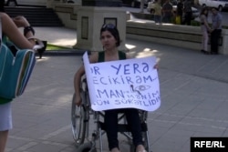 Sənubər Heydərli deyir ki, polis onların əlindəki plakatları da, əlil arabasını da, hətta imzalı kağızları da alıb.