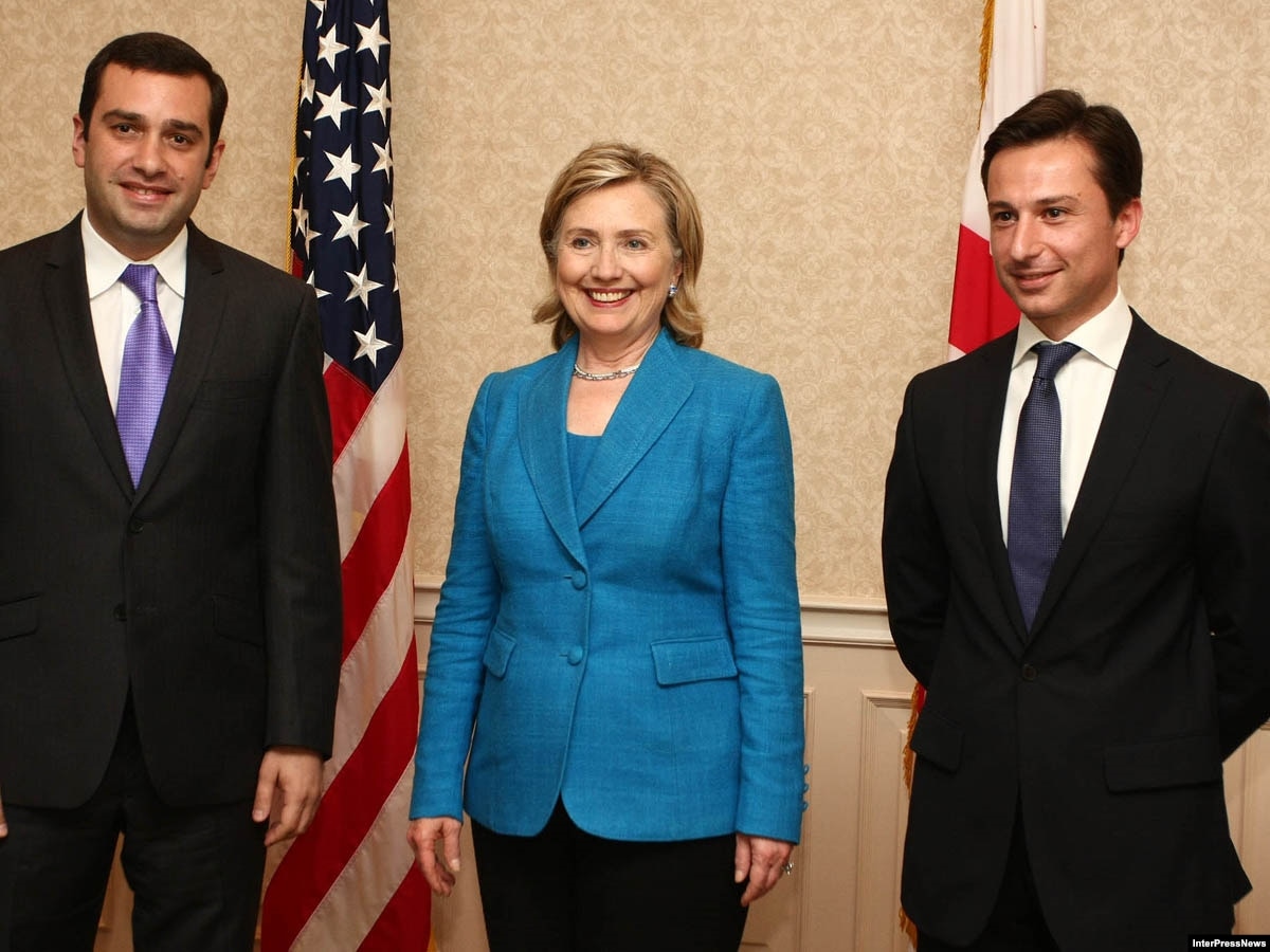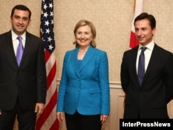 Hillari Klinton Gürcüstanın müxalifət liderləri Giorgi Targamadze və İrakli Alasania ilə -Tbilisi 05 iyul 2010