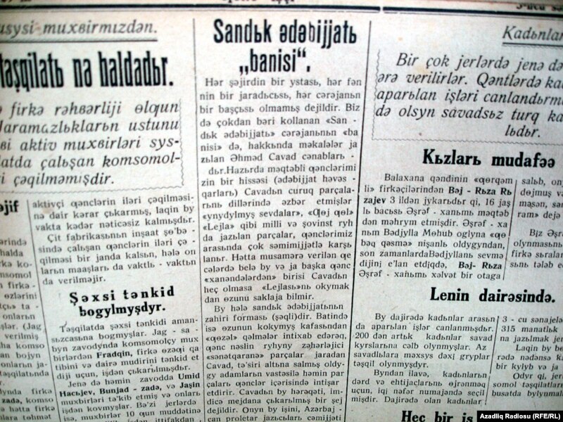 “Gənc işçi” qəzetinin 19 noyabr 1929-cu il sayında Əhməd Cavada qarşı məqalələrdən biri yer alıb.