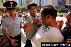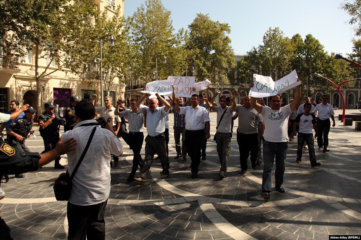 «Azad seçki!», «Qarabağ!» və «İlham, get!» şüarları qışqıran aksiyaçıları polis dağıdıb. Əbülfəz Qurbanlı, Məcid Mərcanlı, Asif Yusifli, Ramiz Kamal və başqaları saxlananlar arasındadır.