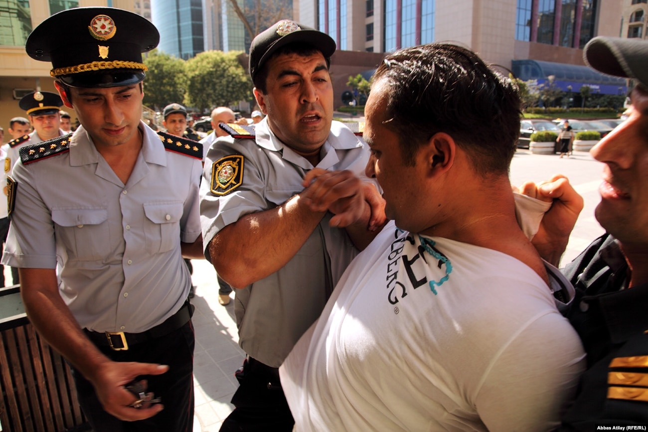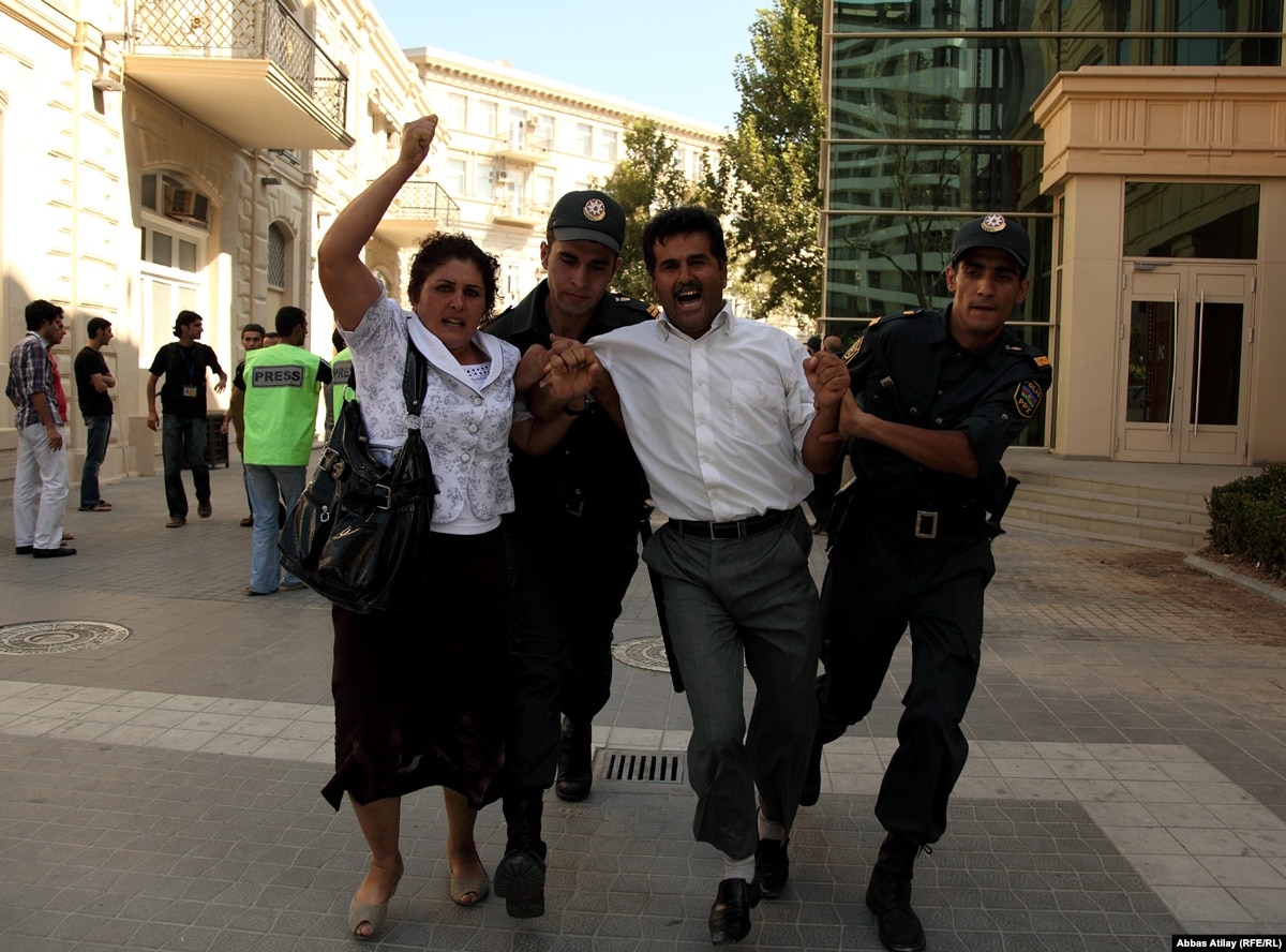 Polis kordon şəklində nəinki aksiyaçıları və jurnalistləri, hətta parkda dincəlməyə gələnləri də bağdan sıxışdırıb çıxarır, hadisə yerini boşaldır. Sıra ilə düzülmüş polislər fiziki zor işlətmədən adamlara «Çıxın gedin!» əmri verir, bağa gələn insan axınını Nizami küçəsinə doğru sıxışdırırlar.