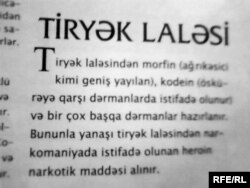 Hüquqi İnkişaf və Demokratiya İctimai Birliyinin rəhbəri Zülfiyyə Mustafayeva apardıqları araşdırmalara əsaslanaraq deyir ki, narkotiklərin gənclər arasında yayılmasının əsas səbəbi bu sahədə maarifləndirmənin və təbliğat işinin aşağı səviyyədə olmasıdır: