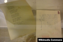 Nazim Hikmətin makinədə yazdığı "Ölü qızcığaz" şeiri və yapon uşaqların ona yazdığı təşəkkür məktubu.