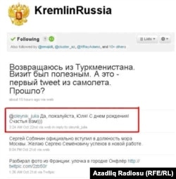 «Medvedyev məni twitterdə təbrik elədi. Günün belə başlayacağını heç gözləmirdim...»