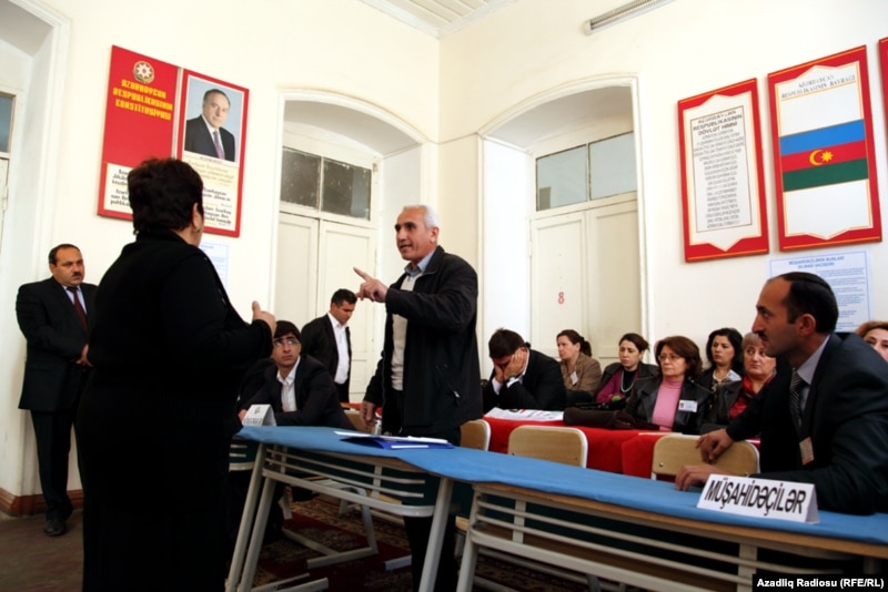 Seçki məntəqəsində rəsmilərlə müşahidəçilərin mübahisəsi