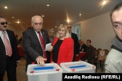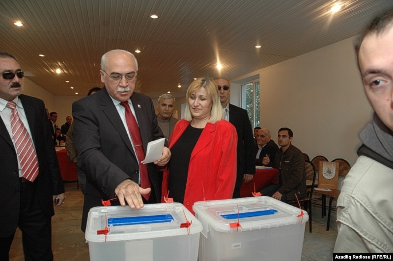 Musavat partiyasının lideri İsa Qəmbər və xanımı səs verir