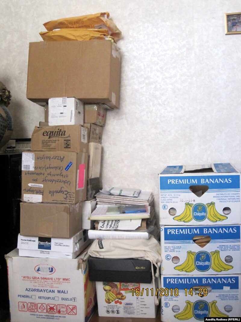 Məhkəmələrdən, qərarlardan danışa-danışa oturduğumuz otağı gözucu seyr edirəm – burada hər şey Eynullaya aiddir. Şkafların üstündə və divarda çərçivələrdə jurnalistin görüşlərini əks etdirən şəkillər və evin bir küncündə topalanmış karton yeşiklər gözümdən yayınmır. Emin Fətullayev yeşikləri qaldıra-qaldıra danışır: