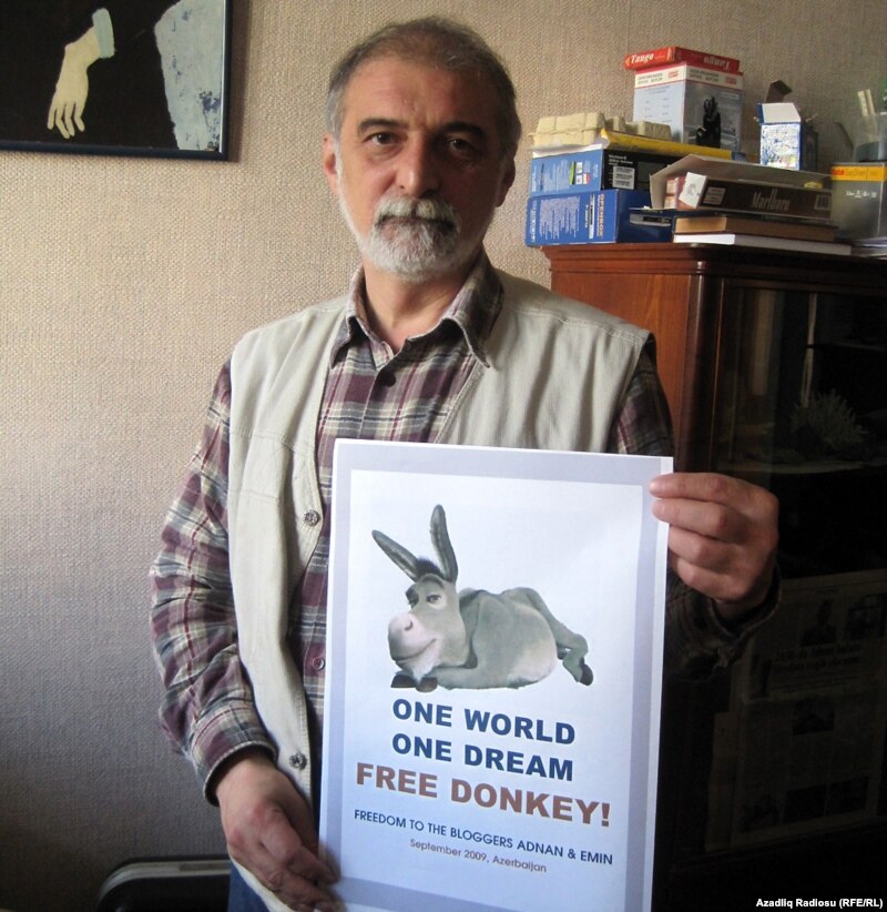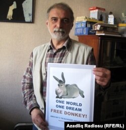 Sonunda mənə üzərində «Free Donkey» – «Azad Eşşək» - yazılmış plakatı hədiyyə edir və sağollaşır.