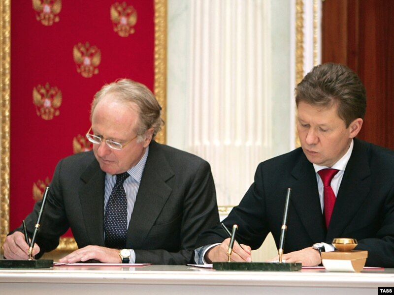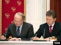 «Qazprom» rəhbəri Aleksey Miller və «ENI» rəhbəri Paolo Skaroni «Cənub axını» kəməri layihəsinə dair saziş imzalayırlar, 2009
