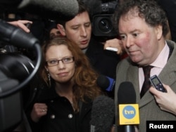 Assancın vəkili Mark Stefens London məhkəməsi qaşısında jurnalistlərin suallarını cavablandırır. 7 dekabr 2010